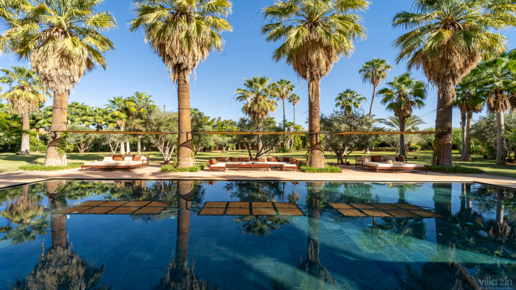 Bienvenue à la villa Zin pour des séjours de luxe en exclusivité à Marrakech. Vous recherchez la location d’une villa de luxe à Marrakech, vous rêvez d’un séjour au cœur des mille et une nuits. Étendue sur 800 m², dans un domaine privé de 12 000 m² avec piscine chauffée, vous pouvez louer en exclusivité cette villa de luxe de 2 à 16 personnes en famille ou entre amis pour un voyage à Marrakech en toute intimité.